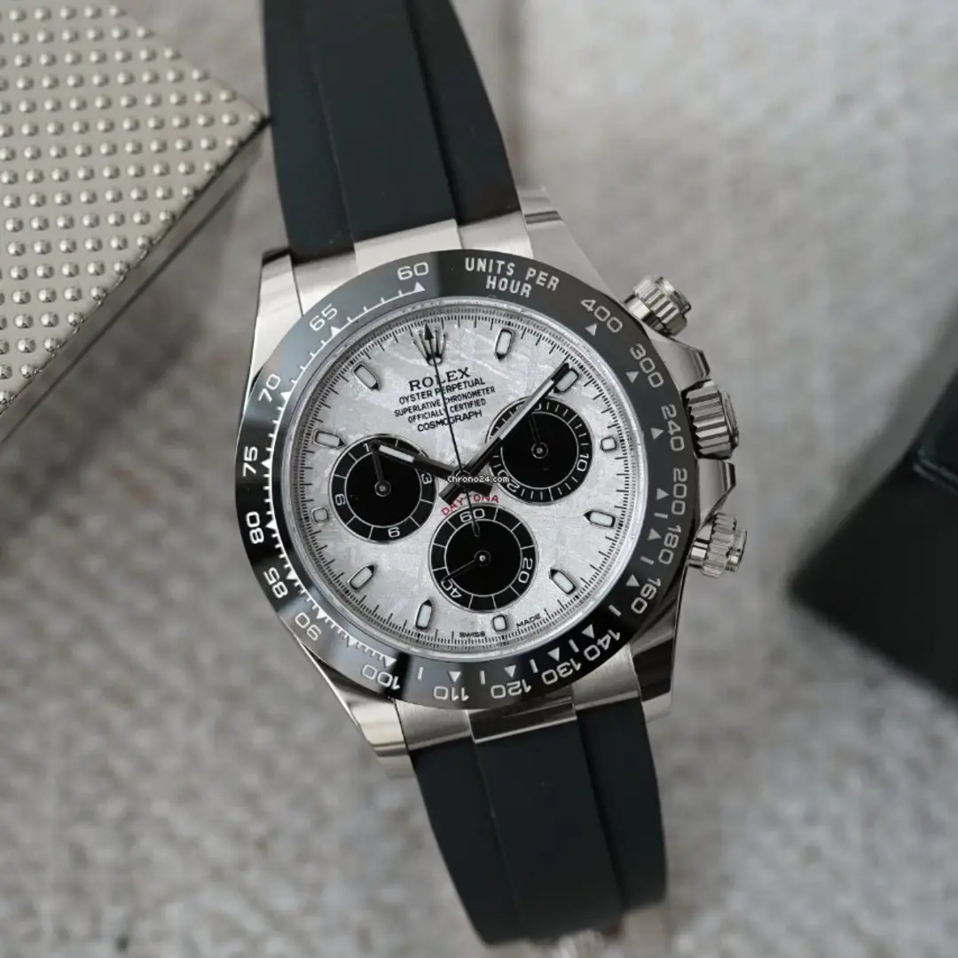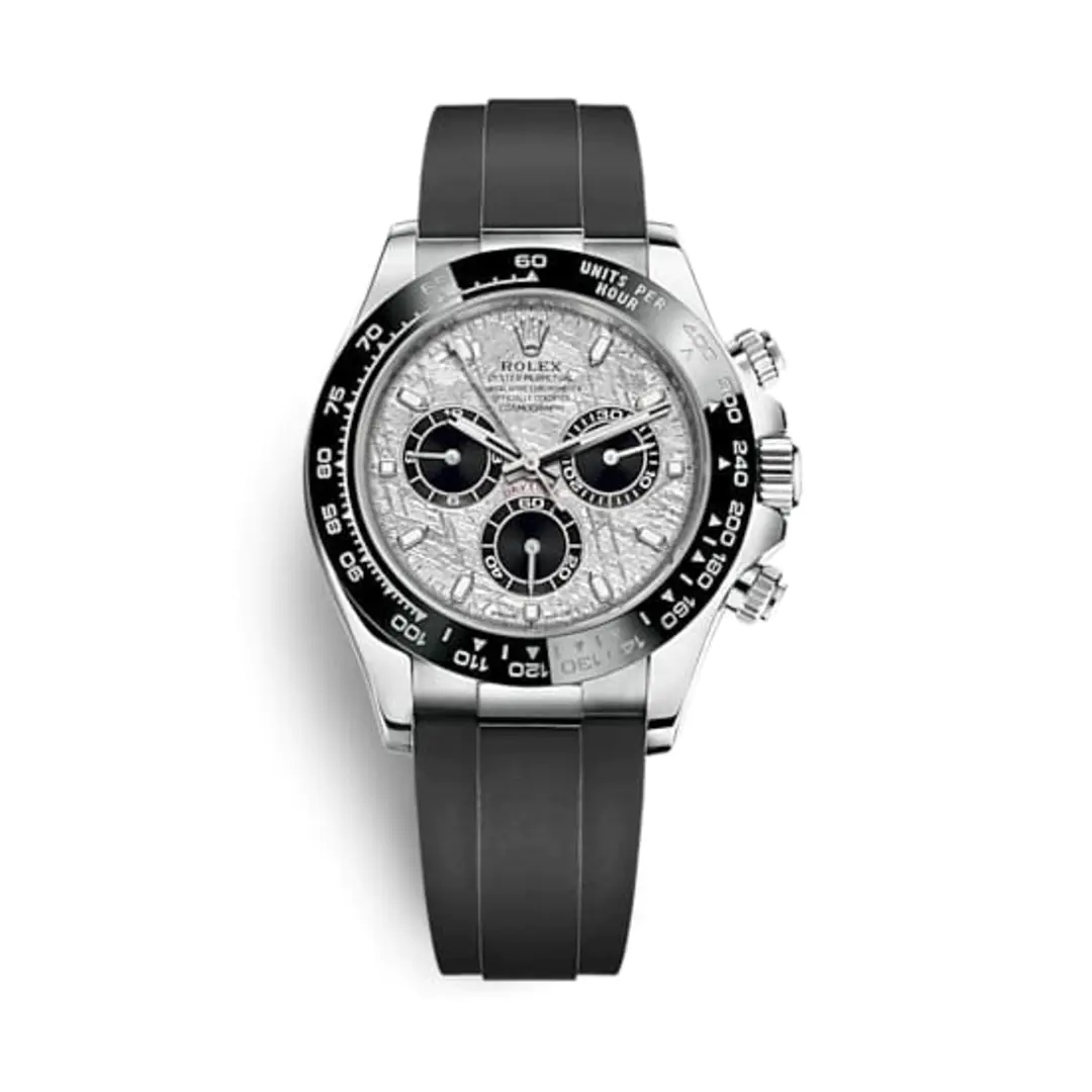 Meteorite comes from the heart of an asteroid or possibly even a planet that has exploded, propelling material across the Solar System until chance brings it into our planet’s orbit and gravity pulls it to Earth. During its journey, the centre of the meteorite is gradually transformed, producing highly unusual metallic patterns, resulting from the very slow cooling of molten asteroid cores. The designers at Rolex create from these configurations a unique treasure for some of the most prestigious models, including this Cosmograph Daytona.