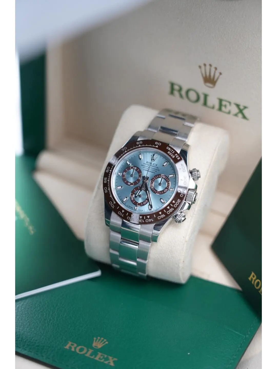 Imagine feeling the cool oyster case against your skin on a hot summer day or watching the “Ice Blue” dial gleam under soft evening lights. Imagine the confidence that comes with wearing a timepiece of such refined pedigree. The Rolex Daytona Cosmograph 116506 Blue Dial Oyster Replica is not just a watch; it’s a statement, a testament to enduring elegance and unparalleled engineering. For those who might be interested in Japanese Mechanism versions, rest assured that you are getting a piece that has been meticulously crafted, though materials and movements may differ. Please don’t hesitate to reach out to our support team for more information and detailed videos.