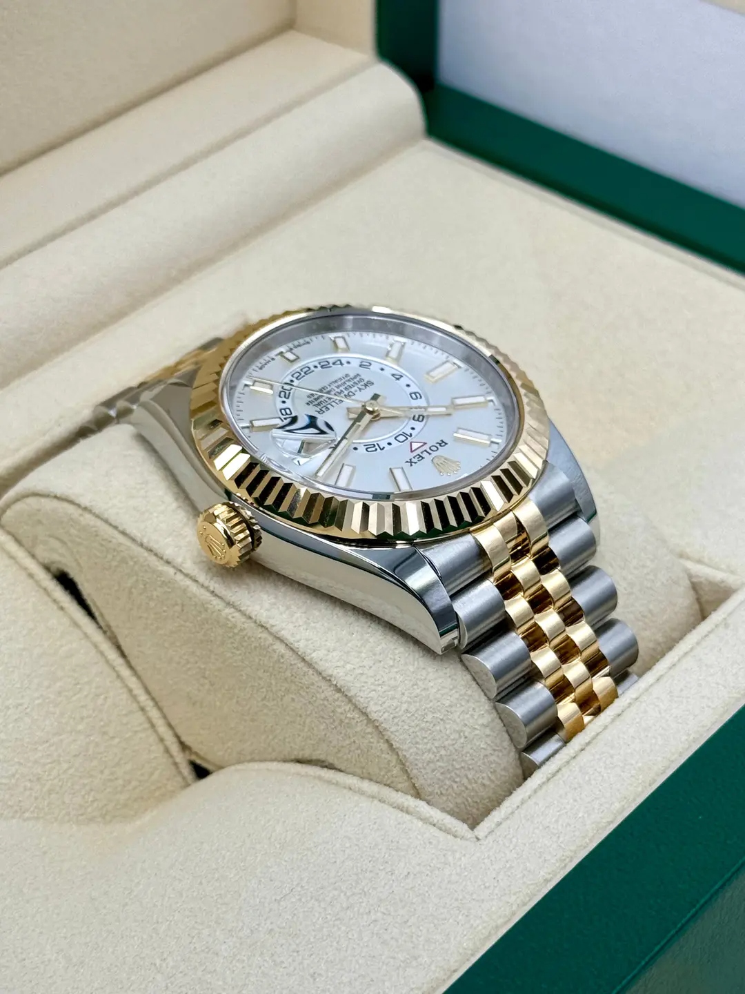 - Polished Solid 18k Yellow Gold with Brushed 904L Oystersteel Stainless Steel Jubilee Bracelet